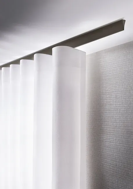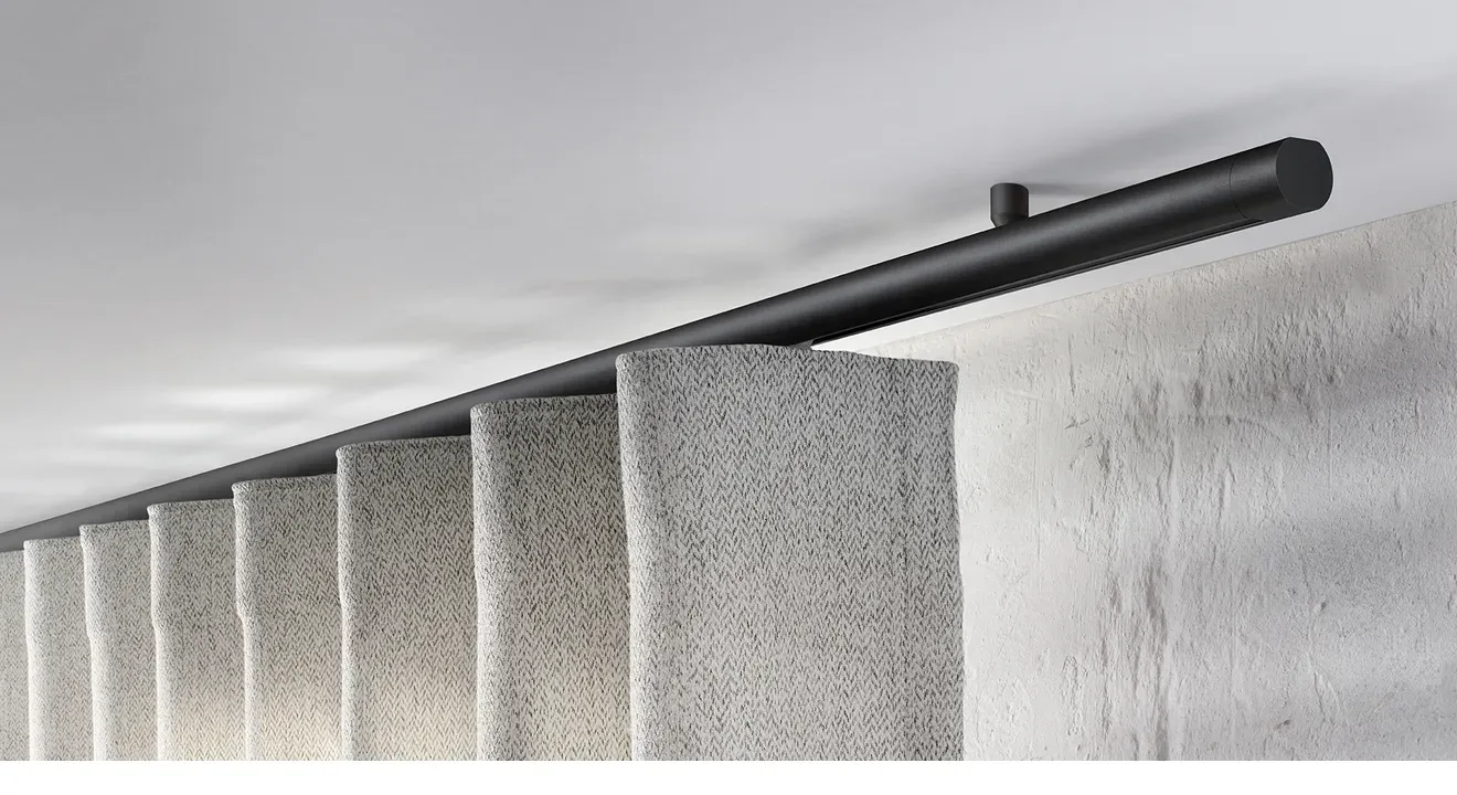 Een goed gordijnsysteem trekt niet de aandacht naar zichzelf, maar laat de gordijnen schitteren. Interstil ontwerpt rails en roedes die naadloos integreren in je interieur, waardoor de techniek verdwijnt naar de achtergrond en de textielen hun rol als sfeermaker kunnen pakken. Minimalisme, comfort en esthetiek gaan hand in hand.